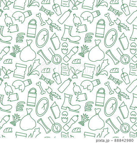 Diverse household trash seamless pattern