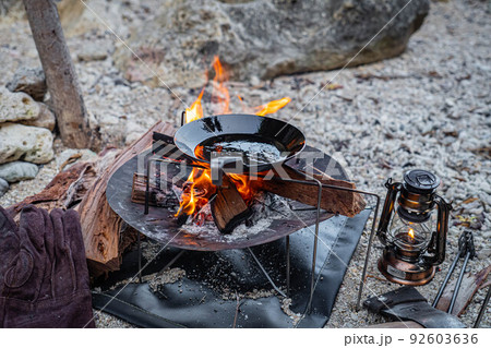 たき火 焚火台 たき火調理 鉄フライパン 無骨