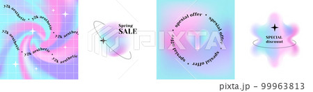 Trendy y2k blurred holographic style a4 posters set with linear geometric shapes and gradient background. Modern minimalist print with simple figures and graphic elements. vector banner template