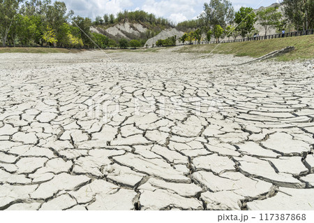 Dry and cracked ground texture as a background.