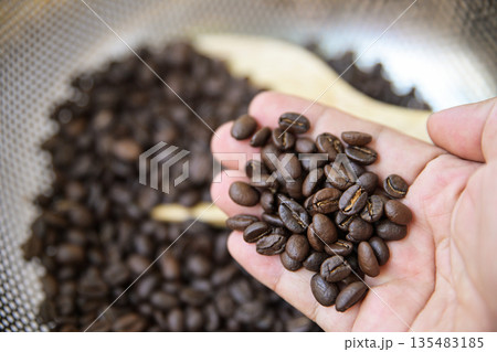 Smart farming techniques machinery roast apparatus coffee bean dry sunlight tool sunbeam sunray sunshine fresh garden produce agriculture promotes farmer concept close up plant farm blur background