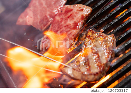 バーベキュー 焼肉 BBQ キャンプ飯 網焼き 炭火焼き イメージ素材