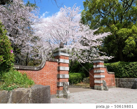 熊本大学黒髪キャンパス 表門(赤門)と桜