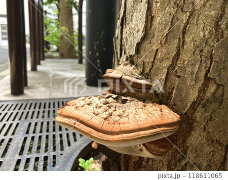 サルノコシカケ 街路樹の根元に生えたサルノコシカケ
