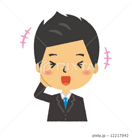 スーツを着た男性が頭を掻いて照れるイラスト