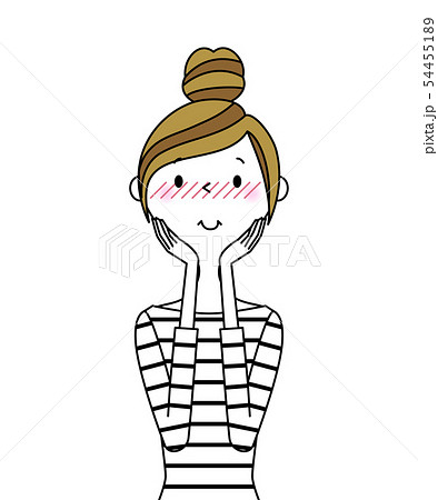 女性 正面 上半身 照れ
