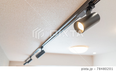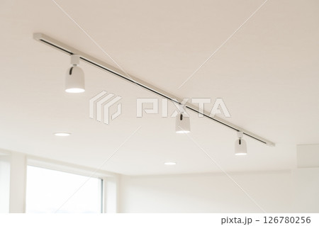 ダクトレールとレールに吊り下げられたスポットライト(屋内照明イメージ)