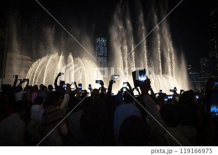 Tourists take pictures of the singing fountains