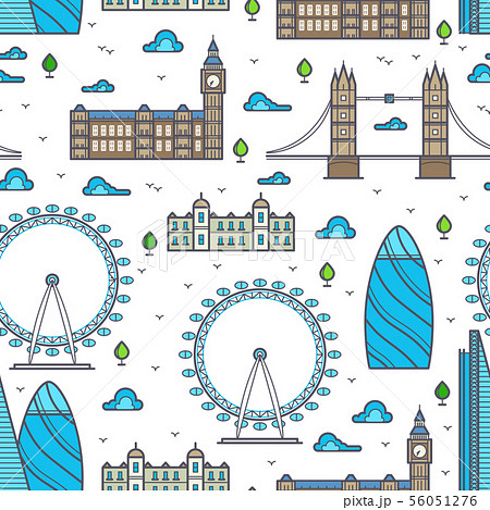 Line London bridges, skylines and sights seamless pattern