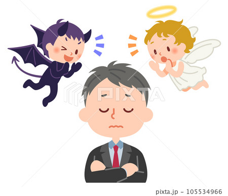 天使と悪魔に囁かれて考え込む男性