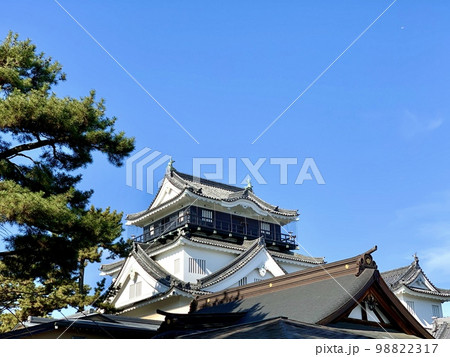 正月の青空に映える岡崎城天守閣を仰ぎ見る〈岡崎城公園/愛知県岡崎市〉