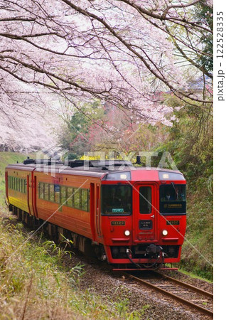 桜のトンネルを後にして 特急くまがわ(九州横断特急塗色車)