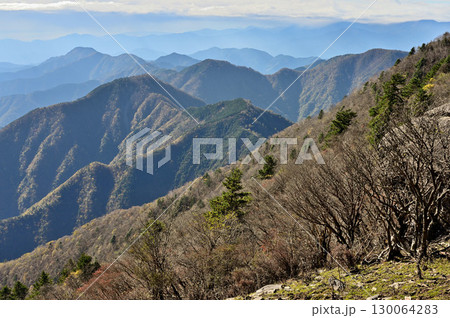 天子山地の毛無山からの展望 天子山地の山並 雪見岳と五宗山