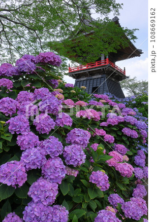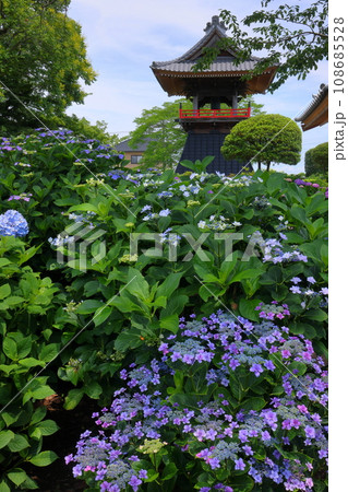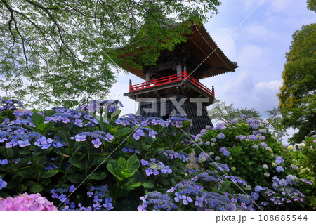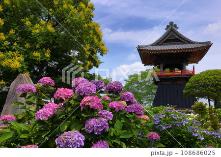 能護寺 あじさいと鐘 楼埼玉県熊谷市