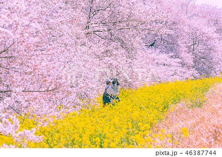 日本の春 桜と菜の花満開の熊谷桜堤 熊谷市 日本