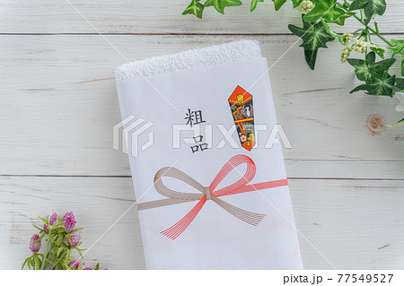 粗品の熨斗紙がついたタオル