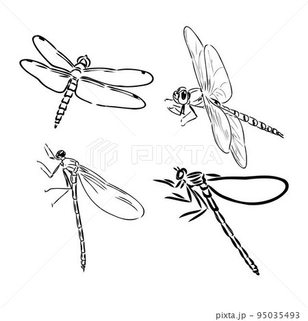dragonfly black and white sketch with delicate wings vector illustration black and white sketch