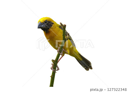 Male Asian Golden Weaver in breeding plumage isolated on a white background