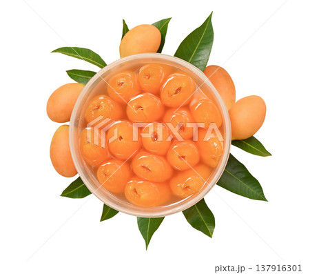 Fresh Marian Plum (Mayongchid) in Thailand, golden ripe tropical fruit, healthy and organic on white background.