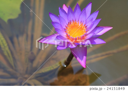水辺のブルーの熱帯睡蓮、青いスイレンの花