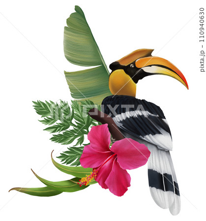 Tropical composition with bird watercolor hand paint
