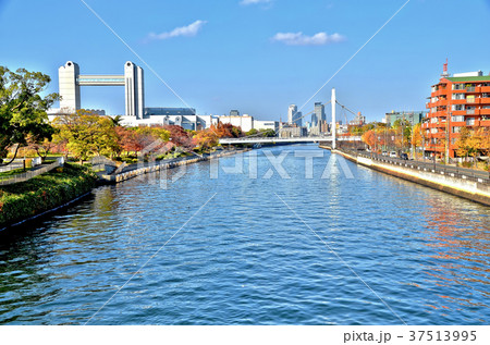 名古屋熱田区都市風景 熱田記念橋から名古屋国際会議場と名古屋駅中心部を望む
