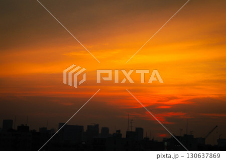 都会のオレンジ色に染まる空
