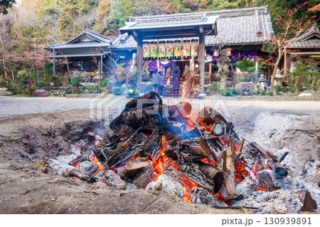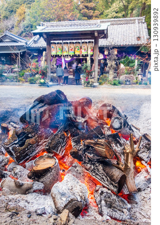 【正月・初詣風景】神社の焚き火・お焚き上げ