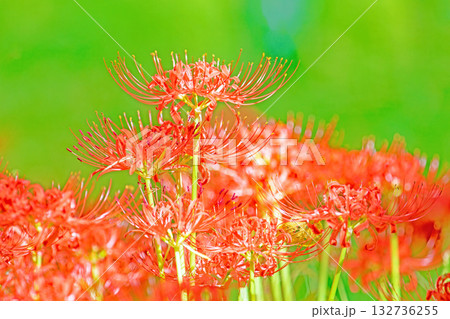 家の周りの草花 四季の色々 燃える様な朱色の花が田んぼの畔や木陰を美しく染めています