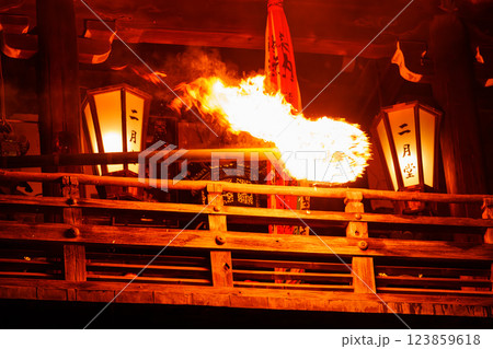 奈良の伝統行事東大寺二月堂お水取り(修二会) 舞台の上を走るお松明②