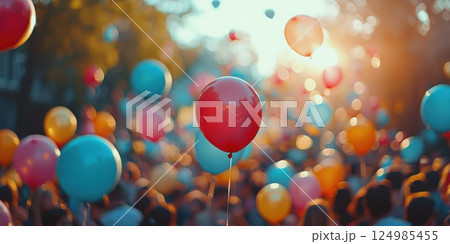Celebration event with colorful balloons outdoor festival photography joyful atmosphere vibrant viewpoint community spirit