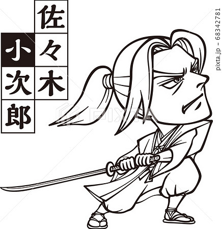 刀を持って戦う佐々木小次郎【2頭身・家紋・巌流島】