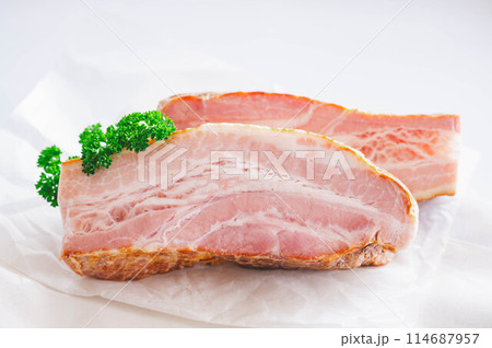 厚切りベーコンの断面