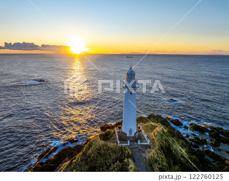 (静岡県)下田爪木崎の灯台と伊豆諸島 夜明け