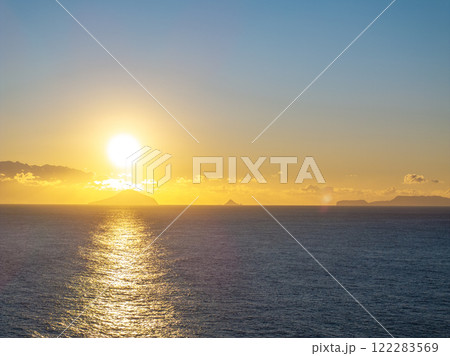爪木埼から見る伊豆諸島の利島(静岡県下田市)