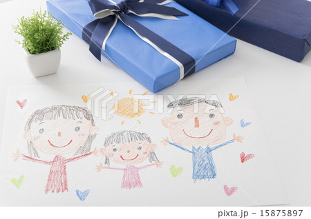 お父さんの似顔絵 子供が描いた父の日プレゼント クレヨンと絵 イメージ素材