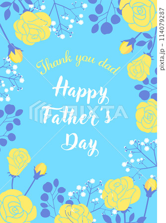 父の日の黄色と青のバラとリボンフレームのイラストセット