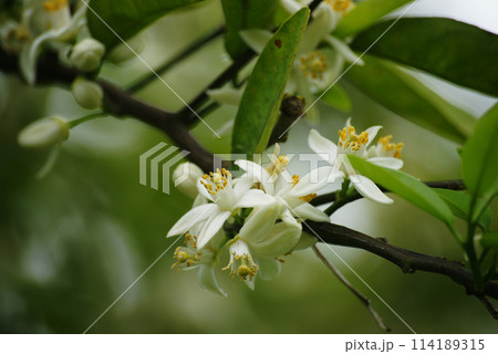 メキシカンライムと断面と、その枝と葉っぱ メキシコより