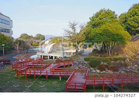 福岡県飯塚市の市民憩いの場勝盛公園指月橋と池