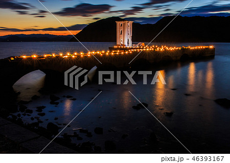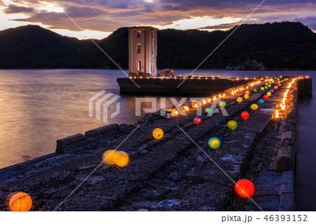 片島竹灯篭まつり 夕暮れ 片島魚雷発射試験場跡 長崎県東彼杵郡川棚町