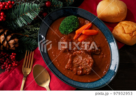 クリスマスイメージの牛タンシチュー