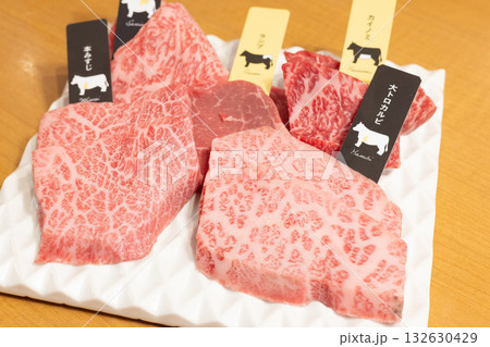 焼肉用の生肉、精肉「牛肉のランプ肉、モモ肉」未加熱です。希少部位。