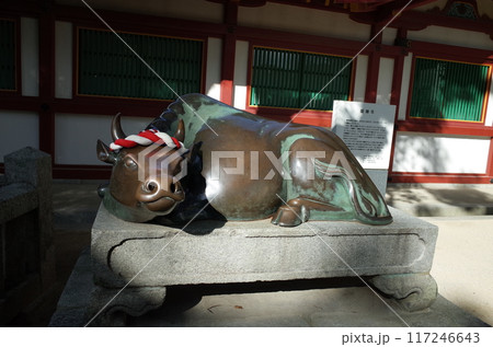 兵庫県宝塚市社町の宝塚神社 摂末社(天満神社)と御神牛