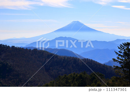 牛奥ノ雁ヶ腹摺山から見る富士山と御坂山地