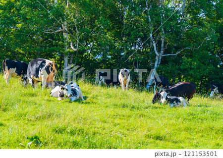 北尾根高原:放牧された牛たち 北安曇郡白馬村