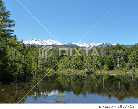 乗鞍高原 牛留池 雲一つ無い快晴の青空に真白な乗鞍岳が美しい