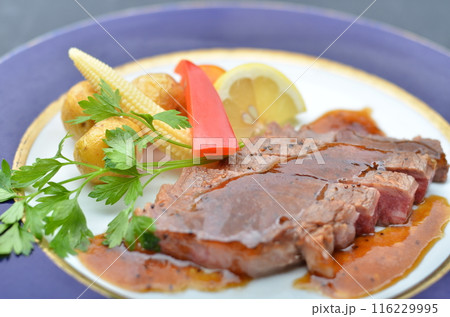 特選ステーキと彩り豊かなガーニッシュで楽しむ一皿