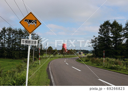 北海道 牛横断注意道路標識