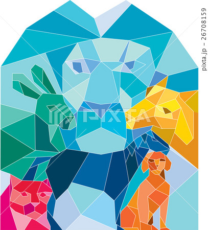 Lion Rabbit Cat Horse Dog Goat Low Polygon