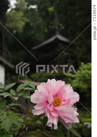 五重塔とぼたんの花